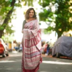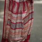 Elevate your wardrobe with this exquisite Bagh Hand–Block printed Tasar Saree, a masterpiece that blends tradition and elegance. Bagh is a traditional hand-block print practised by skilled artisans of Dhar district in Madhyapradesh. Bagh printing is done using natural colours that are mined from fruits and flower extracts.