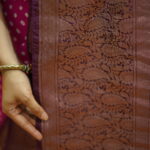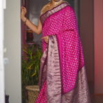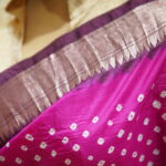 - Saree: Mazenta and Maroon Zari woven Silk Bandhej Kanjivaram Saree