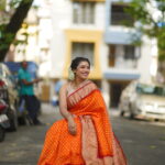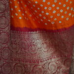 - Saree: Orange and Red Zari woven Silk Bandhej Kanjivaram Saree