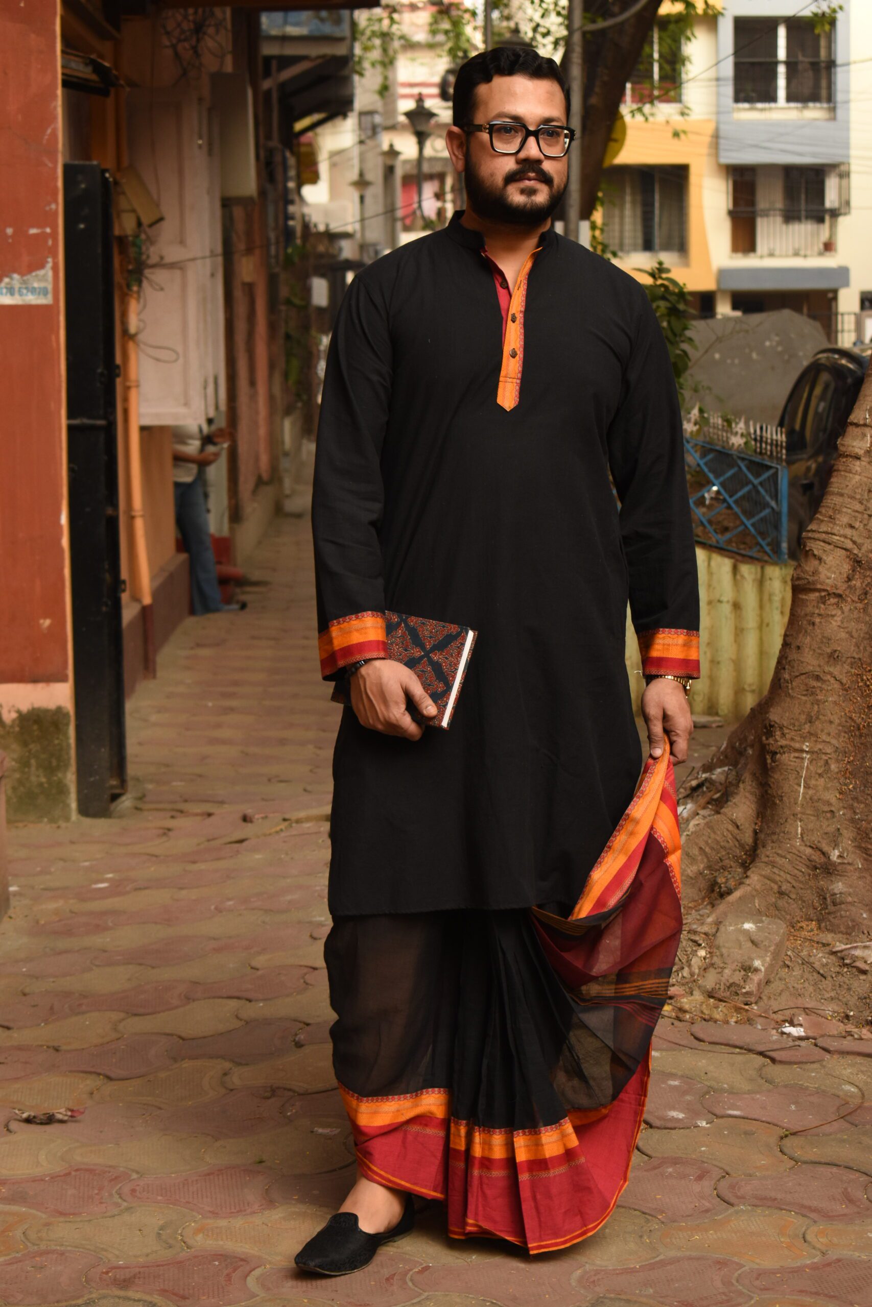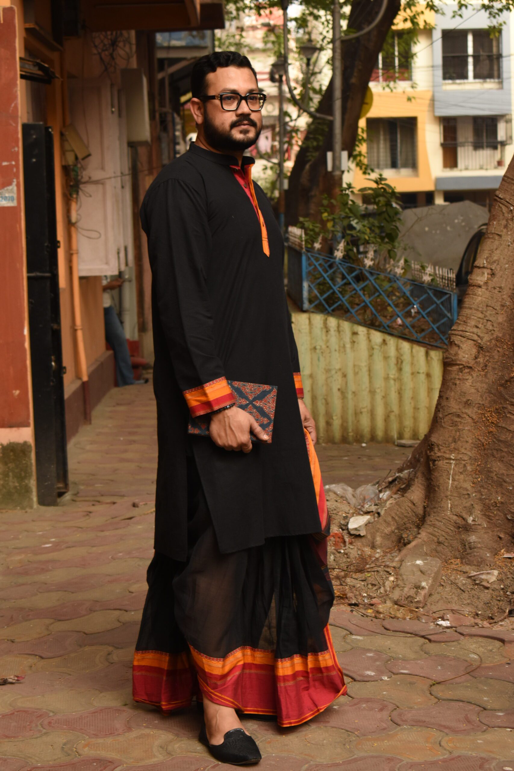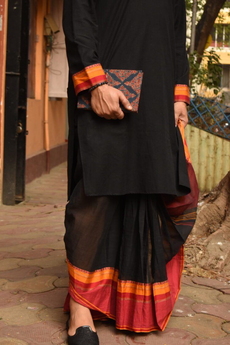 Designed for ease and comfort, this Black Ready-to-Wear Dhoti offers a modern take on a timeless traditional silhouette.
