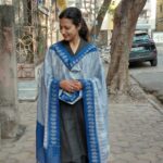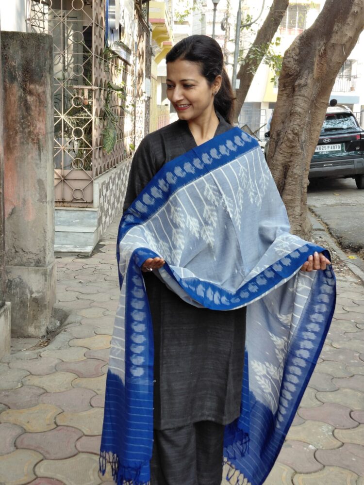 Handloom cotton blue pochampally ikat dupatta is woven by skilled artisans of Telengana.