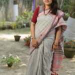 - Product description : The base color of the saree is white with tassel work in the body. The border and the palla is made of pink, brown and rust color.