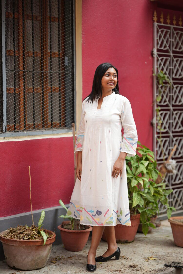 Lightweight, breathable, and naturally graceful, the dress embodies the beauty of slow fashion — where every thread tells a story of craftsmanship and heritage.