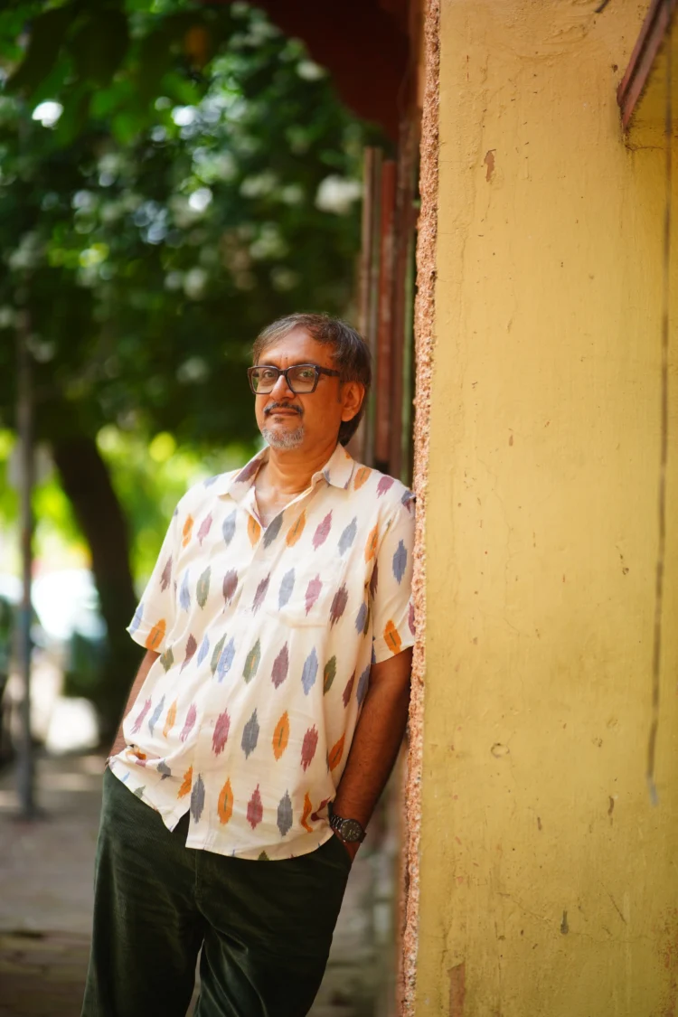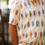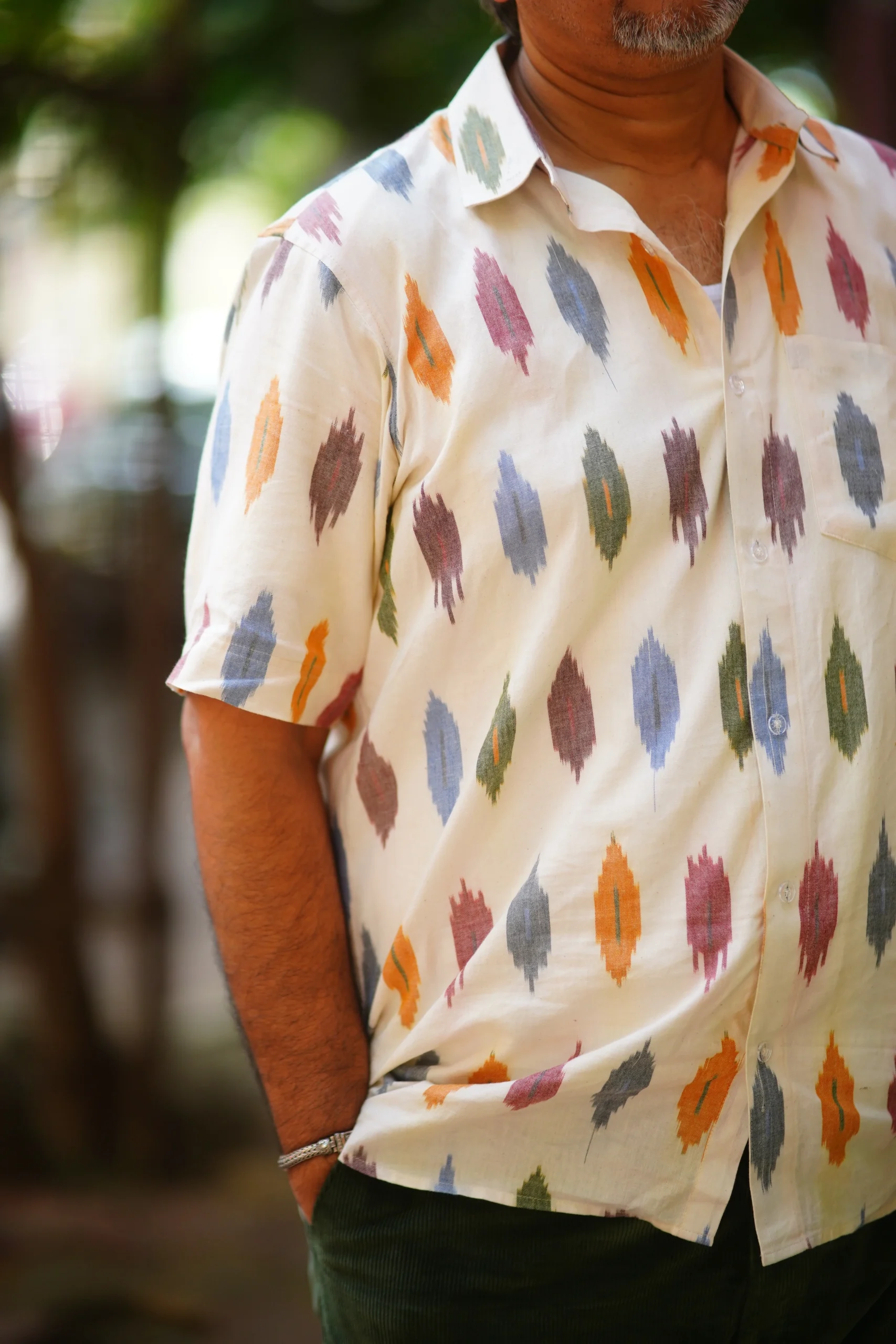 This handwoven Ikat cotton shirt, crafted using traditional yarn-dyed Ikat weaving techniques.