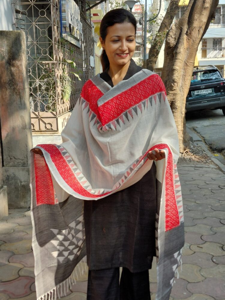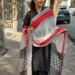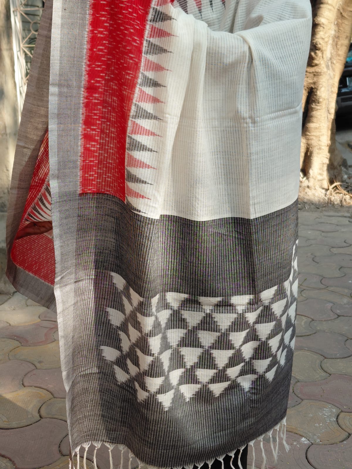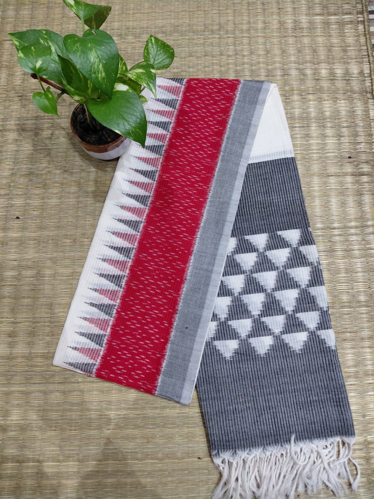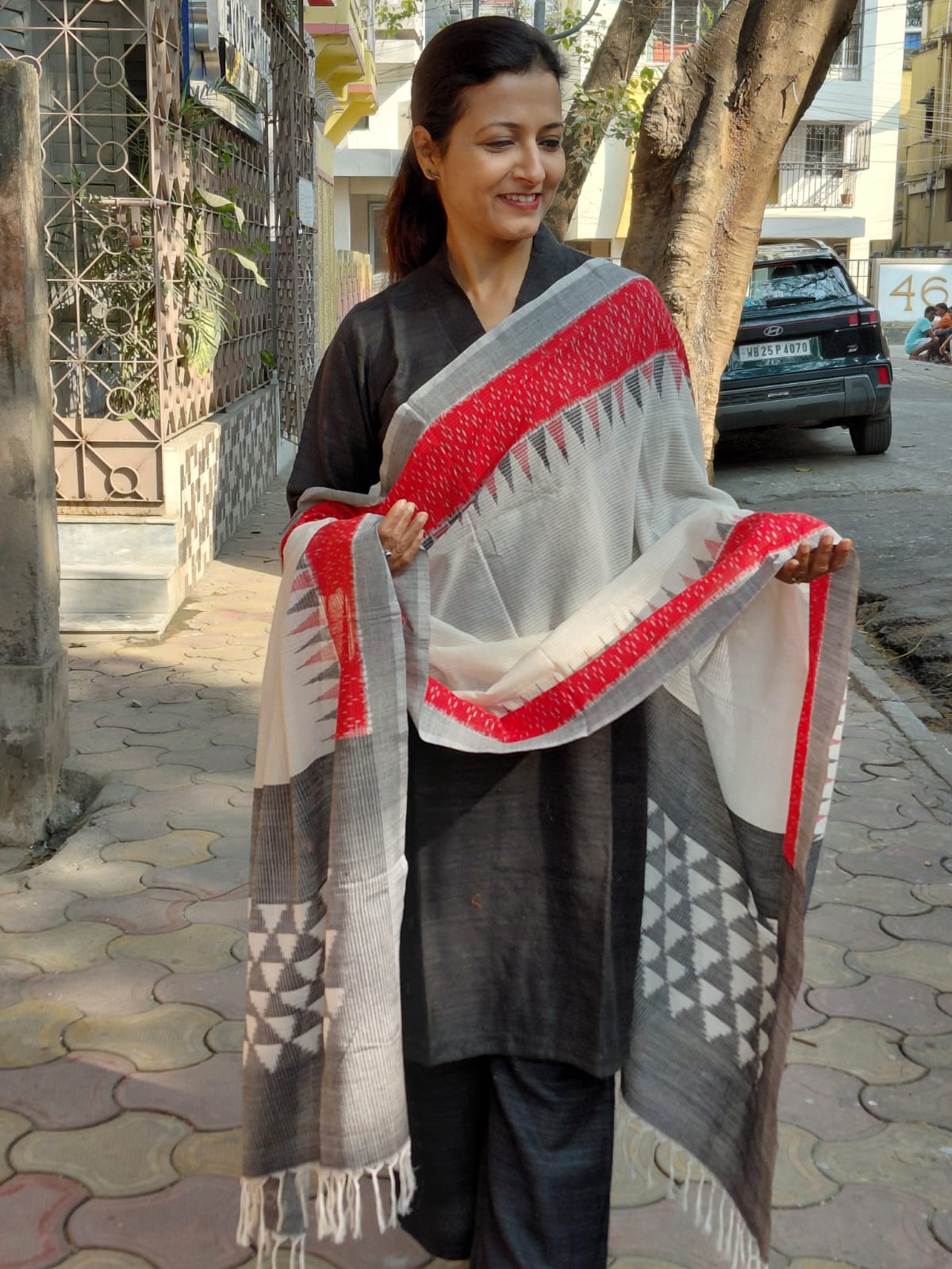 Be the first to review “Ikat White Red Grey Dupatta with tussle”