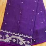 Violet handloom jamdani fabric from Bengal. Delicate thin cotton fabric. All over jamdani buta with white and border jamdani with white in geometric pattern.