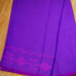 Violet handloom jamdani fabric from Bengal. Delicate thin cotton fabric. All over jamdani buta with mauve colour and border handweaved jamdani with mauve colour.