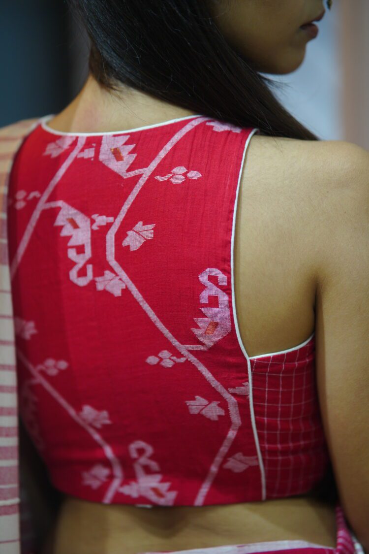Be the first to review “Red Jamdani Sleeveless Blouse”